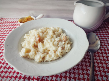 Кашу можно готовить только на молоке или воде. Для приготовления на воде хорошо подходят сорт Жасмин и Арборио. Каша будет менее калорийна, если не добавлять сахар и сухофрукты.