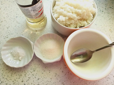 Сделала рис для суши в мультиварке. На самом деле суши я делать не собиралась, но в нашей семье все любят именно рис с пропиткой. Просто скатываю из него шарики и подаю на гарнир к рыбе или курице. Сын ещё капает на шарики соевый соус. Очень вкусно получается! Я всегда варила рис в кастрюле, а тут нашла способ в мультиварке. Это даже проще! Рис я использовала обычный круглый. В моей технике нельзя установить время в режиме "рис", поэтому засекла 20 минут, это почти завершение программы. Рис полностью впитал воду и стал идеальной консистенции. Для заправки смешала все и немного прогрела в микроволновке, чтобы соль и сахар растворились. Осталось смешать заправку с рисом. Шарики катала, смачивая руки водой, в которую добавила рисовый уксус. Очень хороший рецепт, рис получился идеальный.