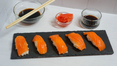 В миске добавила рисовый уксус, соль и сахар, перемешала до растворения. Получившийся соус влила в рис, аккуратно перемешала и оставила остывать. Когда рис остыл мы принялись к приготовлению домашних суши. Рис получился идеальным, отлично принимал нужную форму и склеивался, как надо. Вкус тоже получился гармоничным, отличное сочетание соли и сахара. Суши получились очень вкусными!