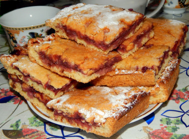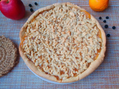 У готового пирога вкусное песочное тесто с ароматной начинкой. К чаю отлично пришелся!