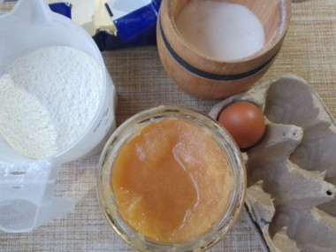Как испечь песочный пирог с повидлом? Подготовьте ингредиенты. Сливочное масло выньте из холодильника заранее, чтобы оно было комнатной температуры. Разотрите масло с сахаром до полного растворения сахара. Вбейте яйцо и перемешайте. Всыпьте просеянную и соединенную с разрыхлителем муку. Быстро замесите тесто. Скатайте его в шар, заверните в пищевую пленку и уберите в морозилку на 20-30 минут. Подробнее о работе с песочным тестом читайте в конце рецепта.