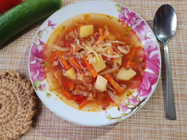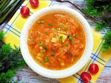 Сегодня на обед сварила вегетарианские щи из свежей капусты. Такой легкий овощной супчик пришелся по вкусу всей семье.