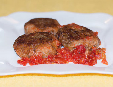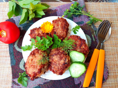Затем в сковороду налейте пару столовых ложек воды, сковороду накройте крышкой и тушите котлеты в течение 10 минут. Жидкость должна полностью выпариться. Котлеты готовы, подавайте их к столу со свежими овощами и хлебом. По желанию можно приготовить дополнительно гарнир. Приятного аппетита!