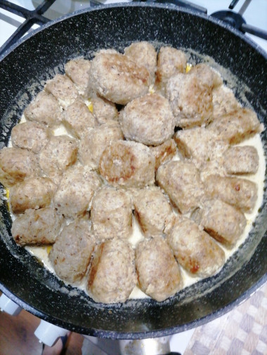 Котлеты из гречки с фаршем на сковороде жарила на разогретой сковороде с маслом, на огне чуть меньше среднего, примерно по 5-7 минут с каждой стороны, обваляв их предварительно в муке.