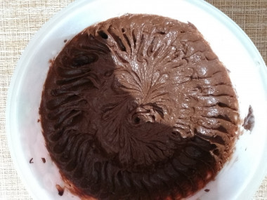 Добавляем соль, экстракт ванили и растопленный шоколад, перемешиваем ложкой до тех пор, пока масса не станет более-менее однородной.