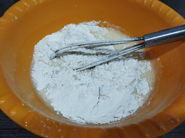 Чтобы тесто получилось без комочков лучше не сыпать муку в молоко, а наоборот, вливать понемногу молоко в муку, размешивая венчиком. Я сделала наоборот, пришлось повозиться с комочками.