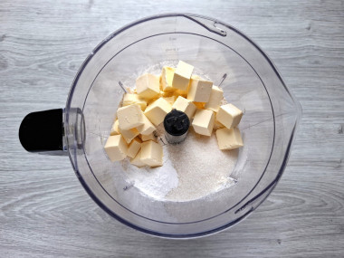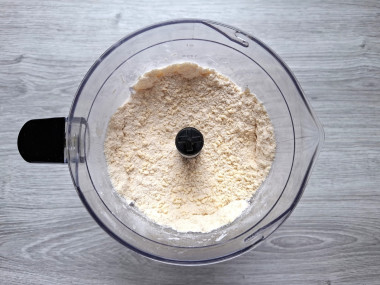 Мне очень понравился рецепт быстрого пирога без яиц с вареньем к чаю. Тесто я решила сделать в блендере, это быстро, просто и руки не пачкаются. Просто загрузила продукты в чашу и взбивала примерно 1-2 минуты. Получилась однородной крошка. Количество продуктов я не меняла, но заменила маргарин на сливочное масло.