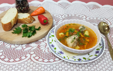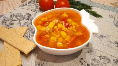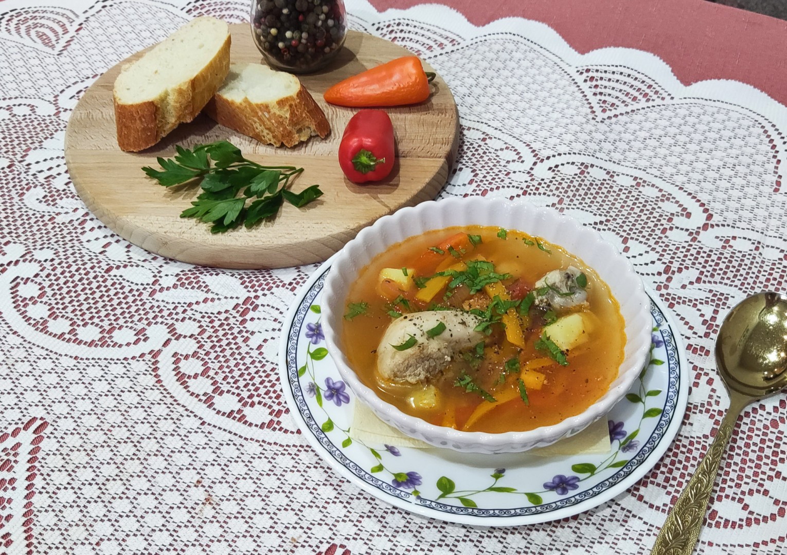 Отличный суп получился по этому рецепту. Бульон варила из куриных бедрышек, предварительно сняла с них шкуру и обрезала жир. Когда бедрышки сварились, у меня это заняло 40 минут, добавила в бульон картошку, потом зажарку, как написано в рецепте. Морковку нарезала брусочками, помидор предварительно подержала в кипятке и сняла с него шкурку. Пока овощи со специями варились, отделила мясо от костей и измельчила его, добавила в кастрюлю, проварила вместе с овощами 10 минут, выключила конфорку и под крышку добавила измельченный ножом чеснок. Суп получился очень сытный, наваристый. Благодаря грамотно подобранному букету специй необыкновенно ароматный.