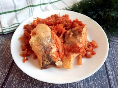 Как и советует автор взяла побольше лука и моркови, чтобы получился гарнир. Дополнительно добавила небольшой кусочек капусты. Кусочки судака запекала под "шубой" из овощей 30 минут. Единственный мой недочет: я слишком сильно разбавила сметану водой и рыба немного развалилась от жидкости. Не смотря на это судак получилая отменным! Очень нежное, вкусное мясо. И сочный гарнир. Отличное блюдо, нам понравилось!