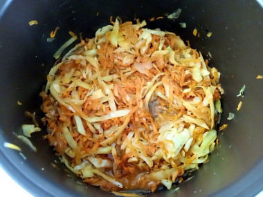 Налив в чашу мультиварки масло, отправим сюда сначала шампиньоны. Готовим их в режиме «Выпечка».