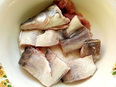 Давно не готовила рыбу, решила исправить пробел и приготовила судака в мультиварке. Рыба у меня была замороженная и достаточно крупная. Размораживала её в холодной воде. Затем нарезала на порционные кусочки, голову тоже оставила, в ней много мяса. Бонусом оказалась икра, её тоже приготовила.