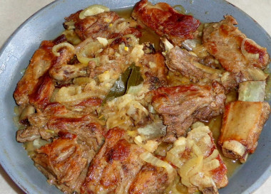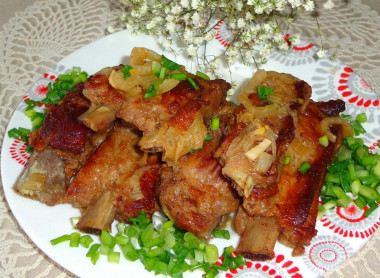 Я жарила эти ребрышки на сковороде без лука. Только в масло добавляла немного чеснока, чтобы ароматными получились. Что могу сказать? Очень вкусно!
