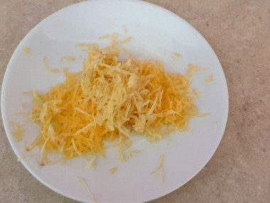Твердый сыр натрите на мелкой терке. Сыр можно использовать любой. Выбирайте тот, что больше нравится по вкусу. О замене сыров подробнее читайте в статье по ссылке в конце рецепта.