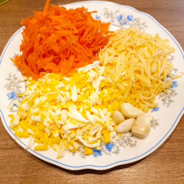 Очень понравился салат с плавленным сыром, морковью и яйцом. Готовится просто, получается вкусно. Да и еще и бюджетно. Супер!