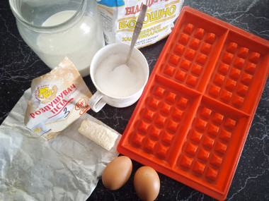 Как сделать мягкие венские вафли в духовке в силиконовой форме? Подготовьте ингредиенты. Муку берите высшего сорта, молоко - любой жирности. Сливочное масло заранее выньте из холодильника - оно нам нужно комнатной температуры. Сырые яйца вымойте и обсушите салфетками. Лучше, чтобы они были охлажденными.