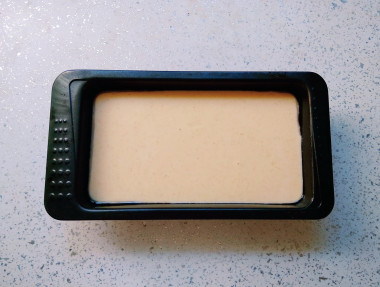 Возьмите подходящую форму для выпечки. Для этого рецепта подойдет любая жаропрочная форма. Если используете силиконовую форму, то промазывать ее маслом или маргарином не нужно. А вот металлическую, керамическую или стеклянную посуду лучше слегка смазать растительным маслом, чтобы выпечка не пригорела. У меня силиконовая, я сразу вылила в нее тесто.