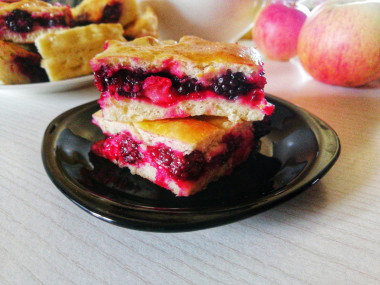 Захотелось сладкого пирога, зайдя на сайт и полистав странички, остановилась на рецепте дрожжевого пирога с черникой. Для начинки взяла ежевику и яблоко. Тесто замесила на молоке с яйцом и растительным маслом. Мякиш у пирога получился восхитительный! Воздушный, мягкий, пористый. Пирог и на следующий день остался мягким и не потерял во вкусе.