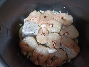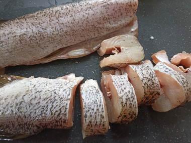 Рыбу нарежьте порционными кусочками одинакового размера. Если вы будете готовить щучью голову, то обязательно удалите жабры.