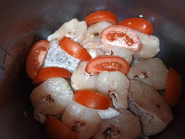Помидоры ополосните и нарежьте дольками. Отправьте томаты к щуке. Так же вы можете добавить в чашу кусочки брокколи, цветной капусты, кабачка и моркови. По желанию все овощи можно исключить и готовить рыбку только с луком. Все варианты приготовления получаются очень вкусными. Посолите всё по вкусу. Добавьте любимые специи.