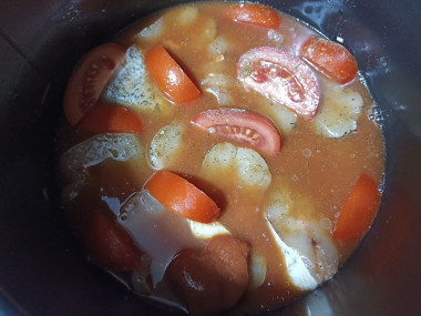 Приготовила щуку в мультиварке. Разделанную и промытую рыбу разрезала на порционные кусочки ( голову оставила для ухи). В мультиварке обжарила репчатый лук, выложила на него кусочки щуки, ломтики помидор, добавила по вкусу соль, перец молотый и горошком, лавровый лист. Залила разведенной томатной пастой. В режиме " тушение" моя мультиварка работает под давлением, готовилась рыба 30 минут. Получилось супер вкусно! Сочные, нежные кусочки щуки в ароматном томатном соусе. Бесподобно вкусно и в горячем и в холодном виде. Спасибо за рецепт, Аля Жемчужинка!