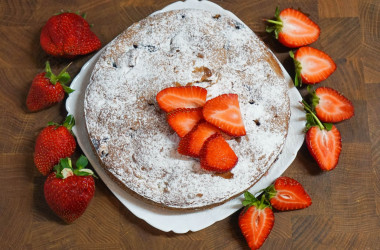 Очень вкусная получилась шарлотка. Из ягод добавляла малину. Для декора посылала ещё сахарной пудрой.