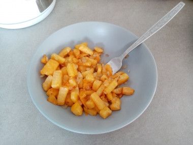 Разогрейте растительное масло на сковороде. Обжарьте кубики репы до румяности.