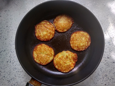 В сковороде разогрейте растительное масло. Оно может быть любым растительным, но обязательно рафинированным. С выбором сковороды и масла для жарки помогут статьи по ссылкам в конце рецепта. Ложкой влейте кабачковое тесто, формируя круглые оладьи. Сколько минут нужно жарить кабачковые оладьи с каждой стороны?Обжаривайте оладьи на небольшом огне около 5 минут с каждой стороны.