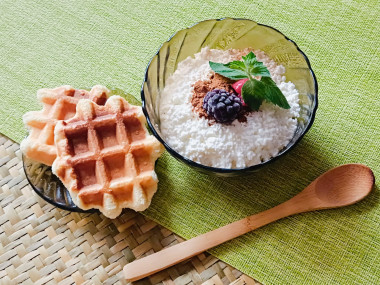 Осталось немного творога и решила приготовить из него десерт. Готовлю творог с корицей. Творог смешала со сметаной и сахаром, сверху присыпала корицей. Испекла венские вафли и подала с творожком. Очень быстро и вкусно.