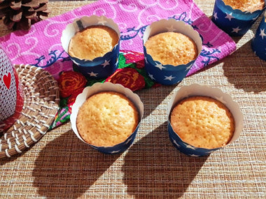 Получились кексики, очень воздушные, нежные, мелкопористые. Сахар я бы в следующий раз немного уменьшила, но все домашние сказали, что меньше сахара не надо, им нравится именно так.