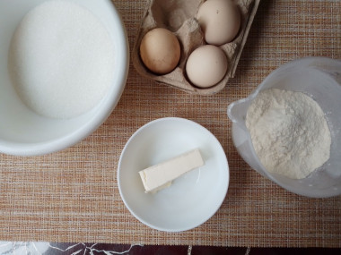Калорийность продуктов: Яйца, Сахар, Ванильный сахар, Сливочное масло, Разрыхлитель, Пшеничная мука