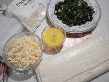 В начинке удачно сочетаются шпинат с двумя видами сыра. Фета - рассольный сыр, обладающий многими полезными свойствами.