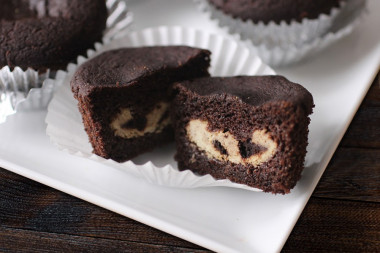 Кексы, какими мы их знаем, эволюционировали от плотных фруктовых хлебов из Древнего Рима. Идея прятать начинку внутрь кекса или маффина стала популярной относительно недавно, с ростом культуры быстрого питания и кофеен. Наш вариант — это домашняя интерпретация популярного десерта, где вместо химических ароматизаторов используется натуральный творог и качественное какао.