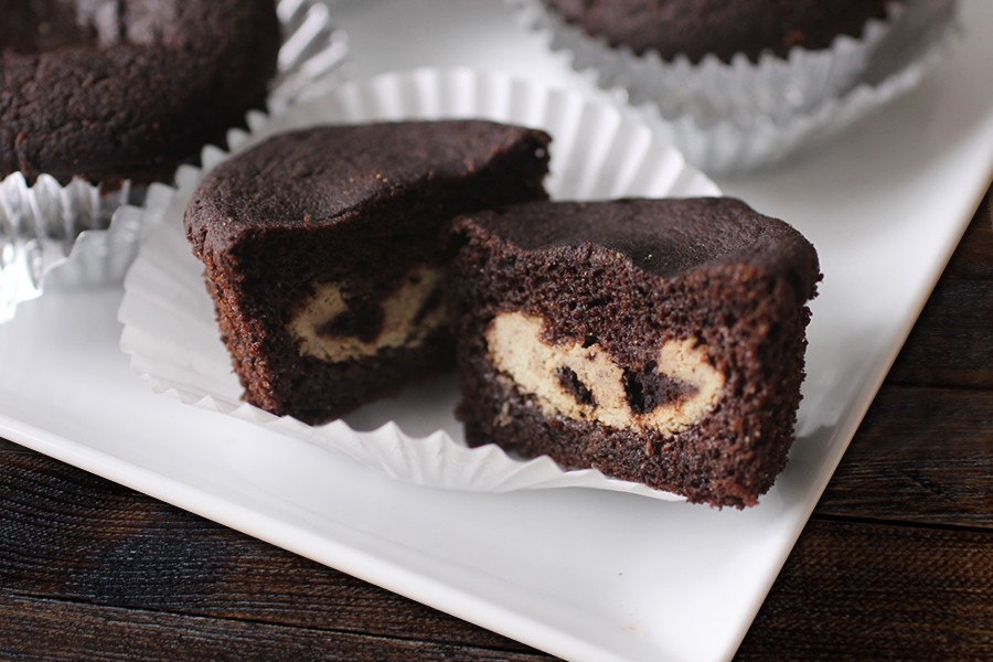 Готовые шоколадные кексы с творожной начинкой можно посыпать сахарной пудрой, полить растопленным шоколадом или подавать с шариком ванильного мороженого. Очень вкусно есть их теплыми, запивая парным молоком или свежезаваренным чаем.