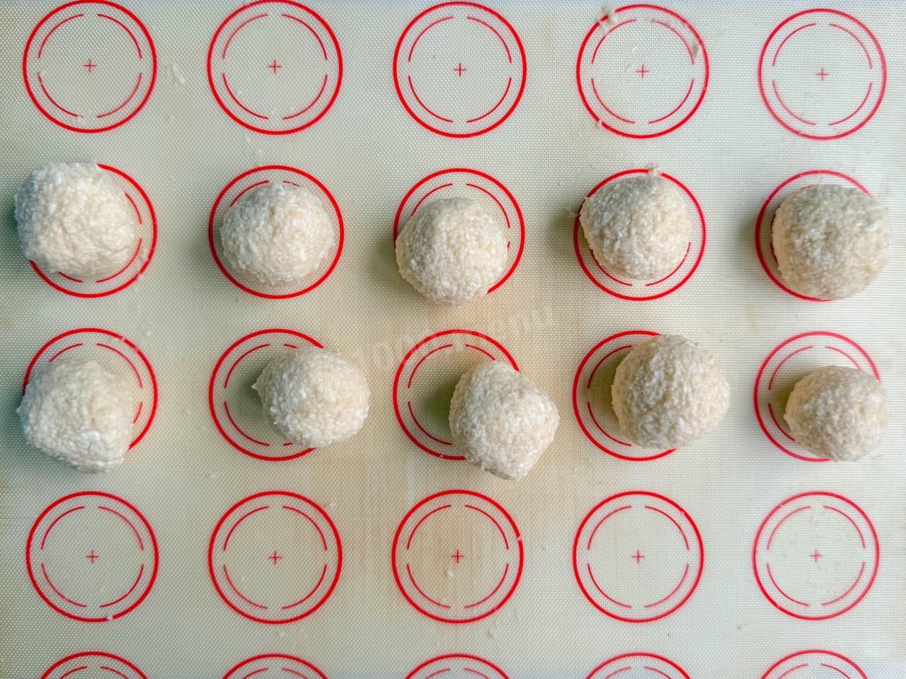 Кокосовую стружку в начинке можно заменить мелко тертым миндалем или вовсе убрать.