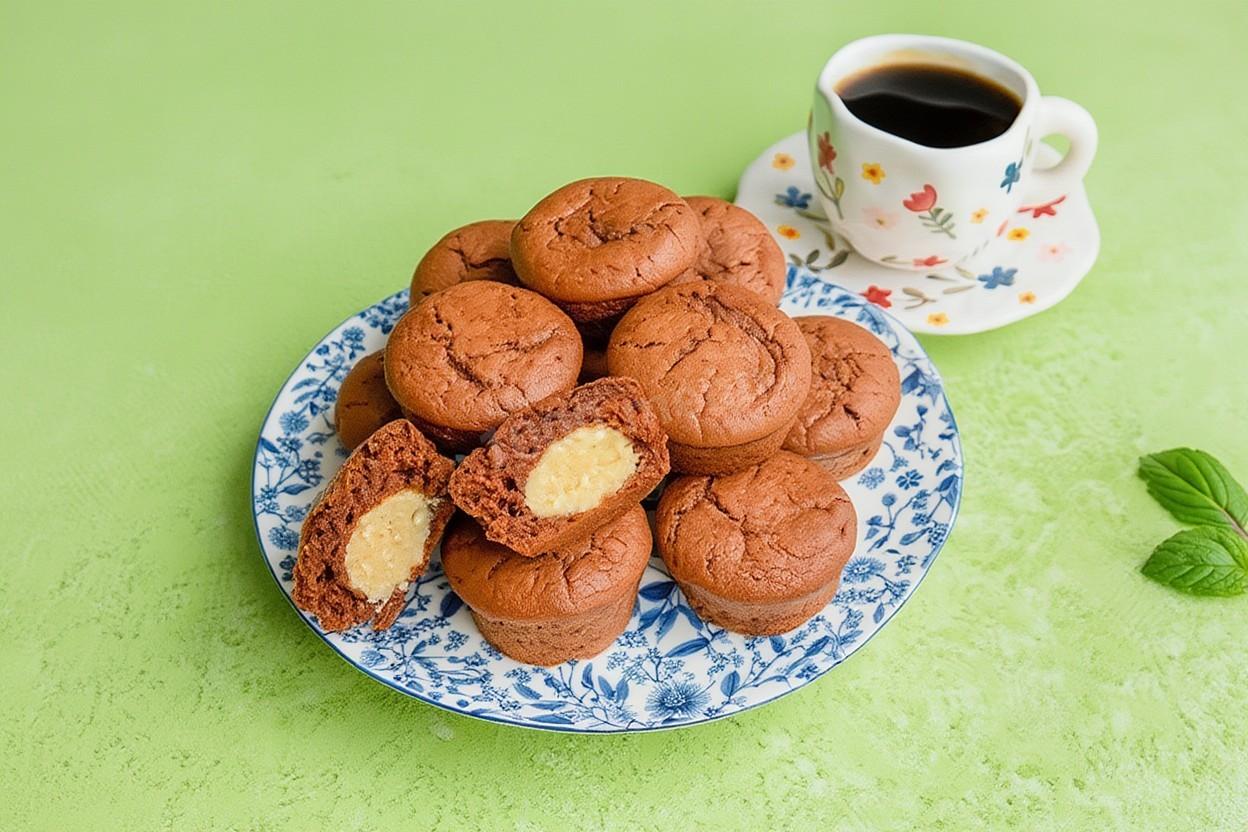 Всё получилось с первого раза. Шоколадные кексы с начинкой внутри — это реально вкусно и выглядит эффектно, как из кофейни. Брала творог 9%, какао "Золотой ярлык". Начинка — нежная, тесто — воздушное. В следующий раз попробую вместо кокоса орехи положить. Всем советую!