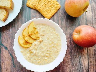 Овсяная каша с яблоками и корицей - замечательный полноценный завтрак! Овсяные хлопья сначала отварила в воде до полуготовности, а затем добавила молоко. Традиционное сочетание яблока и корицы, как оказалось, замечательно подходит и к овсяное каше! Яблоки добавила и в самом конце варки, и в готовое блюдо, в большем количестве, чем указано в рецепте. Спасибо за рецепт!