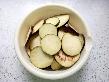 - овощи (баклажаны, цукини, помидоры) моем и режем на кружочки (молодые цукини необязательно чистить от кожицы), толщина кружочков примерно 6-7 мм. Если помидоры крупные, их можно порезать на половинки или четвертинки, а потом нарезать пластинками,