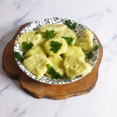 Для разнообразия меню приготовила картофельные галушки. Получилось сытно, питательно и вкусно! Использовала половину ингредиентов.