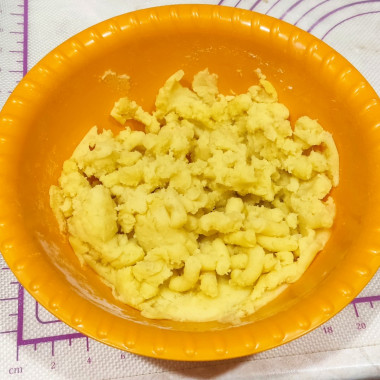 Добавьте в пюре соль и другие специи по желанию. Вбейте яйца. И перемешайте. Начните частями добавлять просеянную муку, замешивая при этом тесто. Оно должно быть в меру плотным и поддаваться лепке . Муки можно понадобиться больше или меньше в зависимости от её свойств. Подробнее об этом читайте в конце рецепта.
