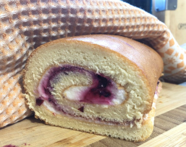В этот раз рулет делала из 5 яиц и в начинку я сделала сметанный крем, поверх него разложила перетертую с сахаром смородину… этот вкус не передать словами🤪рулет получился глянцевый, и за счёт того, что был чуть тоньше, он прекрасно пропитался кремом со смородиной. Божественно вкусно! Спасибо за такой элементарный и полезный рецепт!