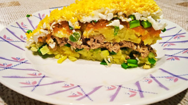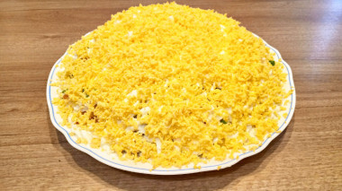 Очень нравится такая альтернатива классической «Мимозе». Тем более печень трески такая полезная. Репчатый лук заменила зеленым, захотелось свежести в салате. Остальное все по рецепту. Вкус у салата сбалансированный, все ингредиенты идеально гармонируют с печенью трески. Салат мимоза с печенью трески классический очень вкусный, изысканный и нежный. Главное дать ему время настояться и пропитаться. Ещё я обычно добавляю слой сыра, но в этом рецепте его нет, поэтому приготовила, как у автора. Очень вкусно и сытно получилось, спасибо за рецепт.