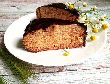 Пирог можно разрезать на коржи и промазать любым кремом или вареньем.