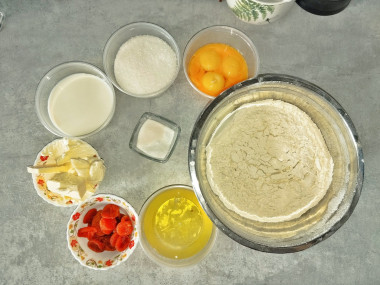 Для приготовления я следовала оригинальному рецепту, заменив кардамон на мускатный орех, поскольку именно он оказался под рукой. Вместо традиционного изюма выбрала курагу, которую заранее замочила в тёплой воде, чтобы сделать её мягче и сочнее. Курагу нарезала небольшими кусочками и щедро добавила в тесто. Впоследствии поняла, что количество сухофруктов можно увеличить ещё больше, ведь такой вариант показался мне весьма удачным.