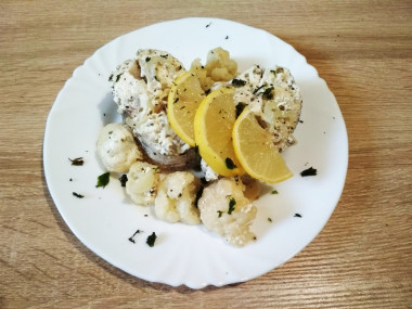 У меня была одна крупная рыбка весом около 450 г. Для приготовления хека в сметане я использовала жаропрочную форму с крышкой. Дно смазала растительным маслом, рыбу - сметаной. Сверху посыпала репчатым луком и разложила кусочки цветной капусты (вместо брокколи). Полила лимонным соком, а дольки лимона выложила уже сверху на готовую рыбу. Получилось вкусно. Хочется отметить, что хек - рыба с нейтральным диетическим вкусом, лук, лимон и брокколи (а в моём случае цветная капуста) вносят в блюдо свежесть, сочность, но индивидуальности во вкус не добавляют. Поэтому итоговый вкус готового блюда будет сильно зависеть от набора специй, который будет использован. Я использовала сухой базилик, молотый кориандр и белый перец. Но в следующий раз прикуплю готовую смесь для рыбы, с ней вкус более выразительный. Спасибо за рецепт!