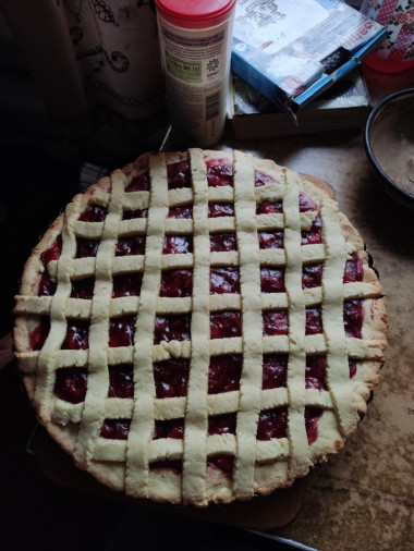 Замесила песочное тесто, дала ему полежать и сформировала из него пирог.