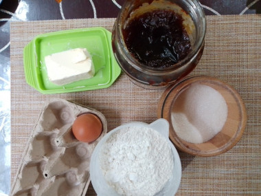 Как испечь быстрый сладкий простой пирог в духовке? Подготовьте все необходимые ингредиенты. Яйцо берите крупное. Варенье выбирайте любое густое по вашему вкусу. Также подойдёт повидло. Сливочное масло заранее достаньте из холодильника. Оно должно быть комнатной температуры. Муку заранее просейте. Благодаря этому готовый пирог получится пышнее и воздушнее.