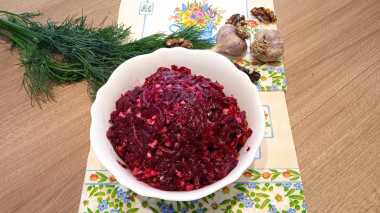 Свекла с чесноком и грецким орехом - сочное пикантное блюдо, которое подается непосредственно перед мясными или рыбными блюдами. Оно готовится на одном дыхании и состоит из бюджетных ингредиентов, которые можно запросто найти на своей кухне.