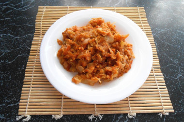 Пересыпьте промытый рис в чашу мультиварки. Многие готовят рис с капустой в мультиварке немного по-другому, сначала обжаривая лук с рисовой крупой, затем добавляя нарезанную капусту и воду, томатную пасту. Этот вариант отличается тем, что рис сначала необходимо отварить до полуготовности. Лук по рецепту не обжаривается, а тушится вместе с остальными ингредиентами. При этом блюдо получается более диетическим, сочным и ароматным.