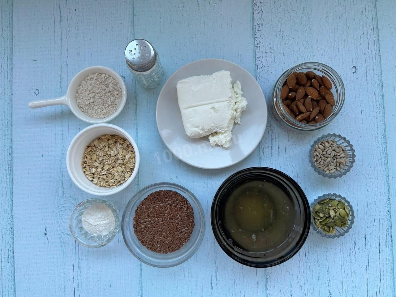 Для начала подготовьте все необходимые ингредиенты. Миндаль можете заменить на любые другие орехи. Творог берите обезжиренный. С выбором качественного творога поможет статья по ссылке в конце рецепта. Включите духовку на 175 градусов.Шаг 2. Как подготовить орехи, овсяные хлопья и семена льна к приготовлению теста?