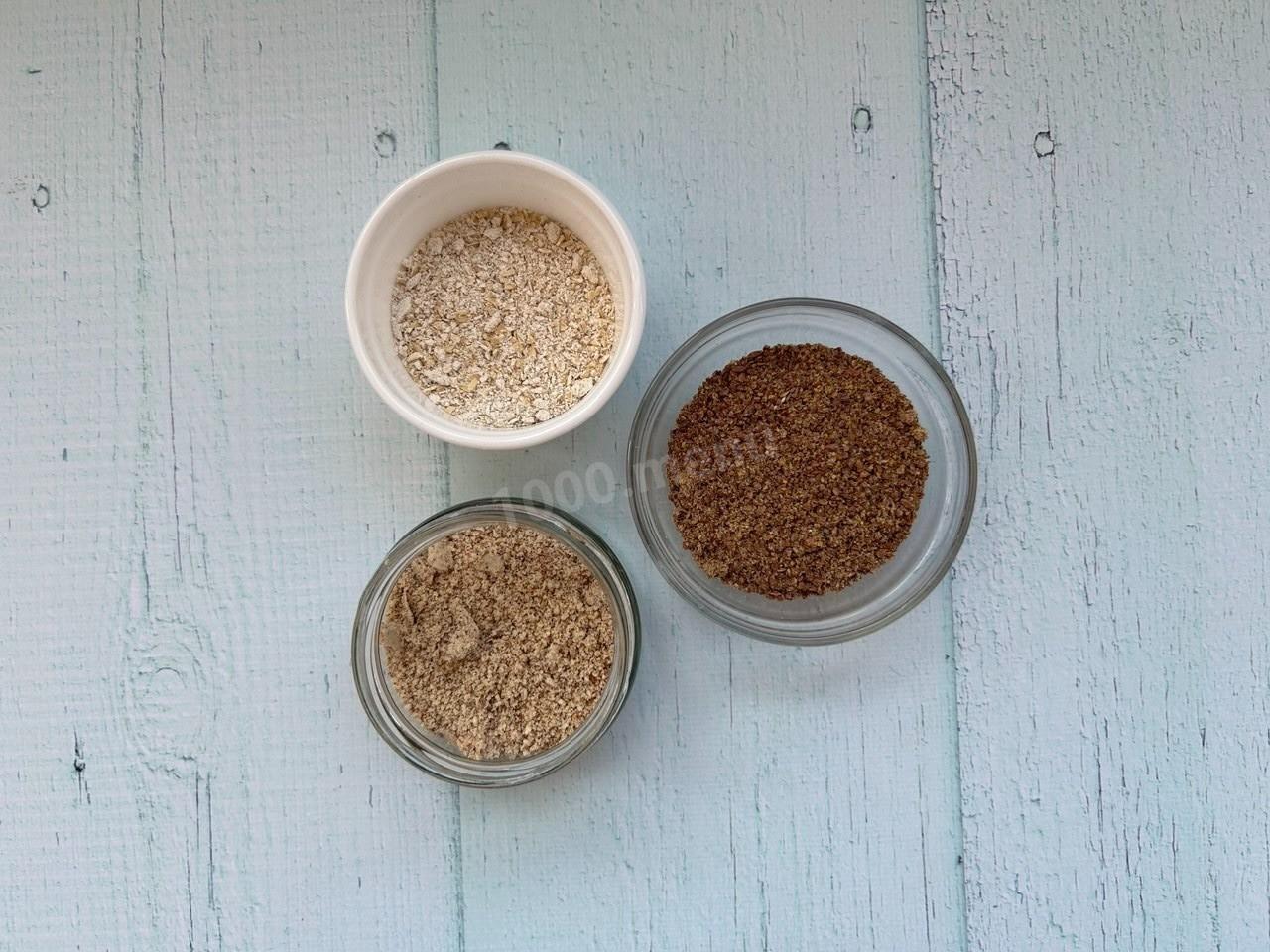 Измельчите миндаль, овсяные хлопья и льняные семена с помощью блендера. Овсянку выбирайте долгого приготовления. Подробнее о видах овсяных хлопьев читайте в конце рецепта.Шаг 3. Как замесить тесто для белкового хлеба?